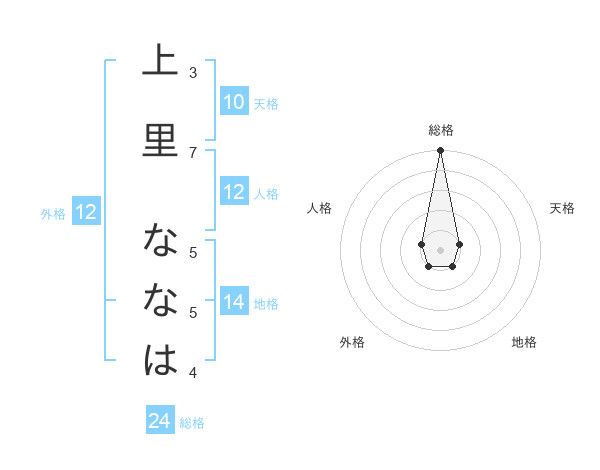 上里 ななはさんの総格は24画の5点!
