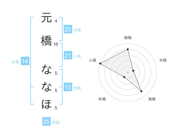 元橋 ななほさんの総格は35画の4点!