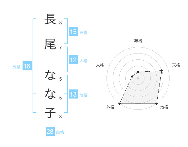 長尾 なな子さんを姓名の画数から五運を鑑定