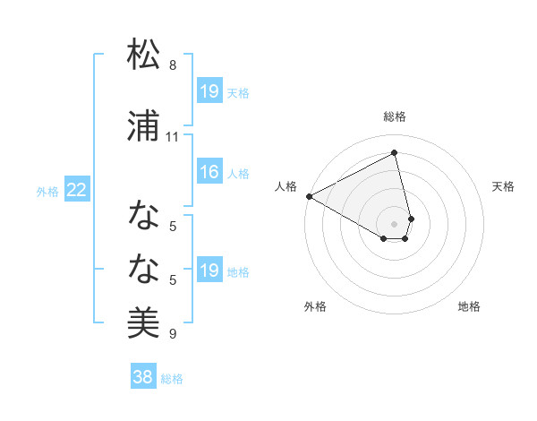 松浦 なな美さんの総格は38画の4点