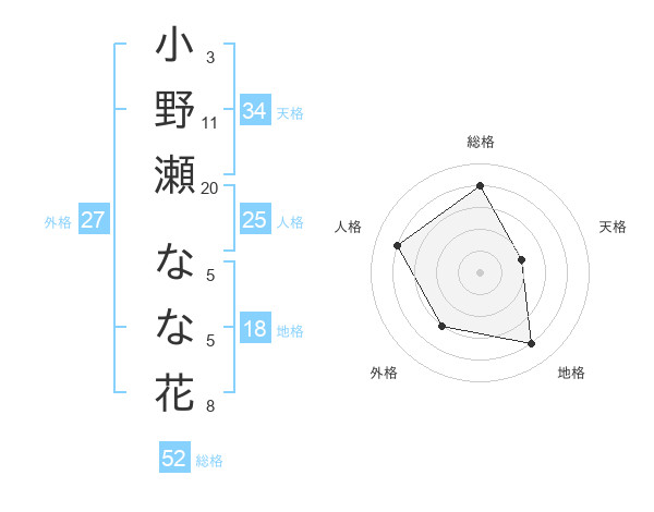 小野瀬 なな花さんを姓名の画数から五運を鑑定