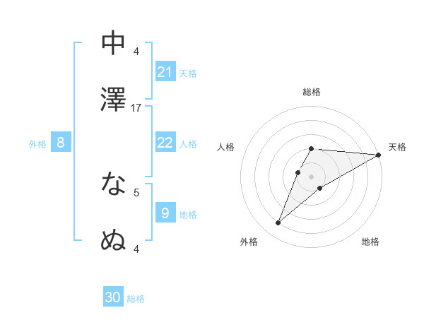 中澤 なぬさんを姓名の画数から五運を鑑定