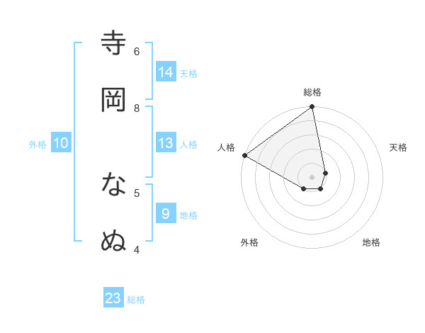 寺岡 なぬさんの総格は23画の5点!