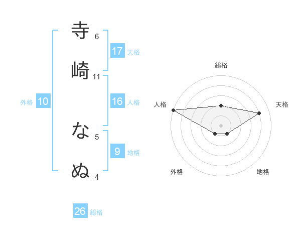 寺崎 なぬさんを姓名の画数から五運を鑑定