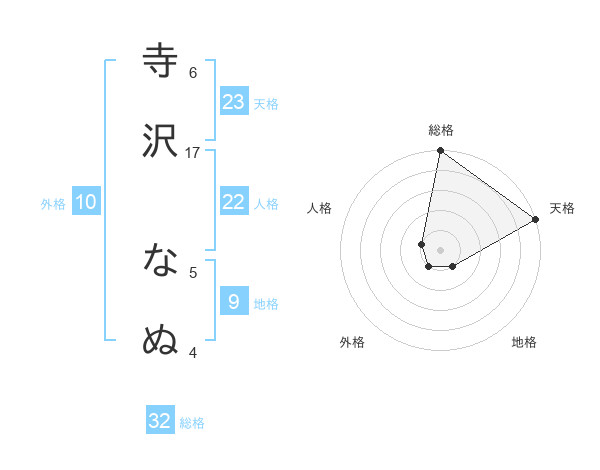 寺沢 なぬさんの天格は23画の5点!