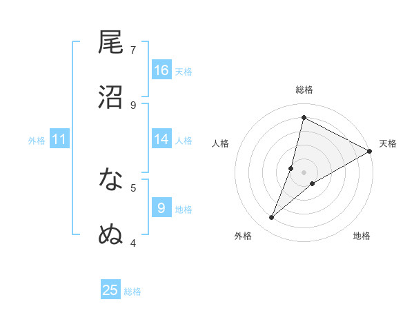 尾沼 なぬさんを姓名の画数から五運を鑑定