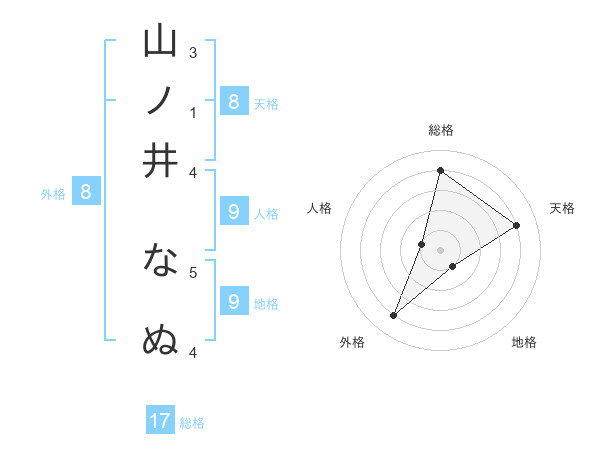山ノ井 なぬさんを姓名の画数から五運を鑑定