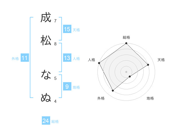 成松 なぬさんの外格は11画の4点!