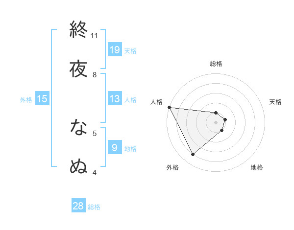 終夜 なぬさんの天格は19画の1点!