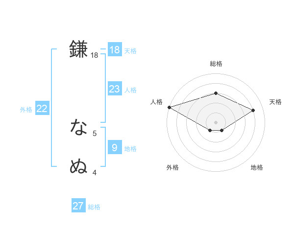 鎌 なぬさんの総格は27画の3点!
