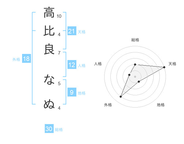 高比良 なぬさんの天格は21画の5点!