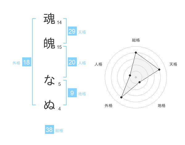 魂魄 なぬさんの外格は18画の4点!