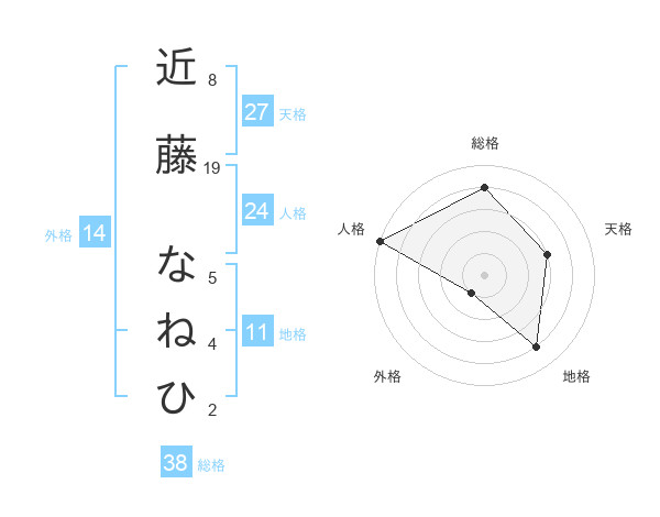 近藤 なねひさんを姓名の画数から五運を鑑定