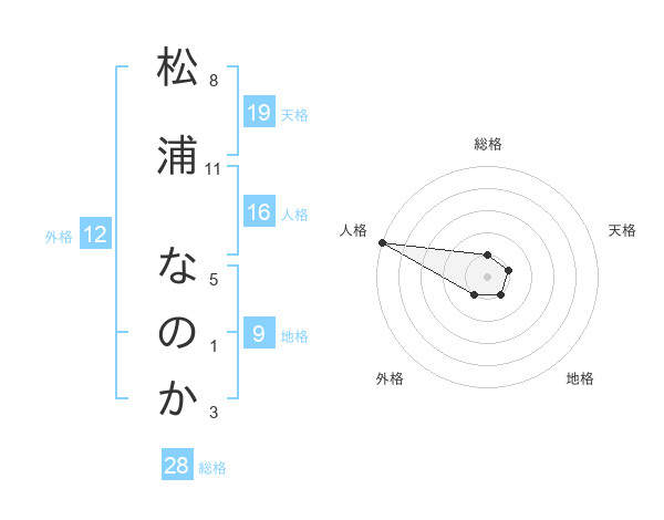 松浦 なのかさんを姓名の画数から五運を鑑定