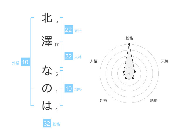 北澤 なのはさんを姓名の画数から五運を鑑定