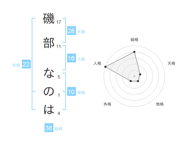 磯部 なのはさんを姓名の画数から五運を鑑定