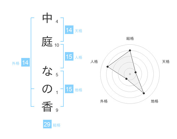中庭 なの香さんを姓名の画数から五運を鑑定