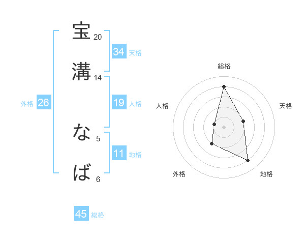 宝溝 なばさんの総格は45画の4点!