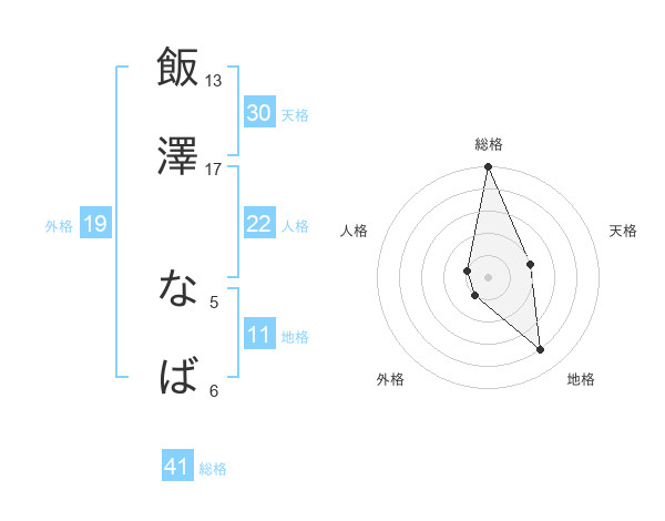 飯澤 なばさんを姓名の画数から五運を鑑定