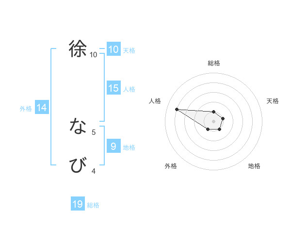 徐 なびさんの総格は19画の1点!