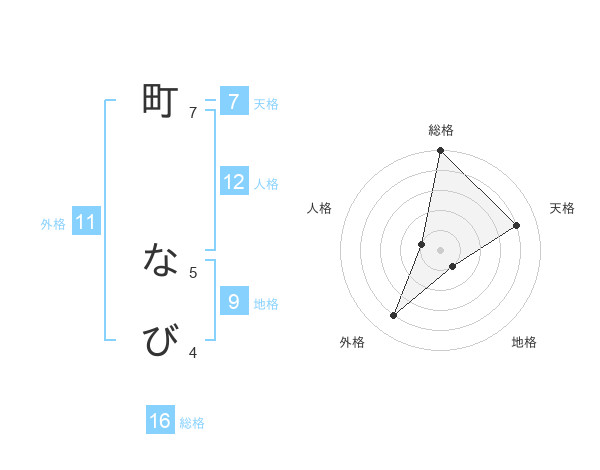 町 なびさんの総格は16画の5点!