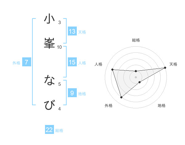 小峯 なびさんの天格は13画の5点!