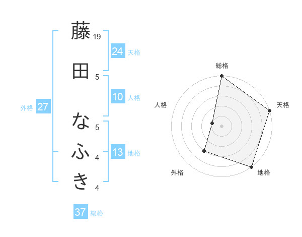 藤田 なふきさんを姓名の画数から五運を鑑定