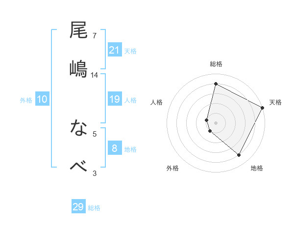 尾嶋 なべさんの総格は29画の4点!