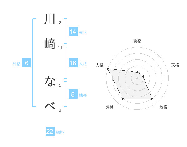 川﨑 なべさんを姓名の画数から五運を鑑定