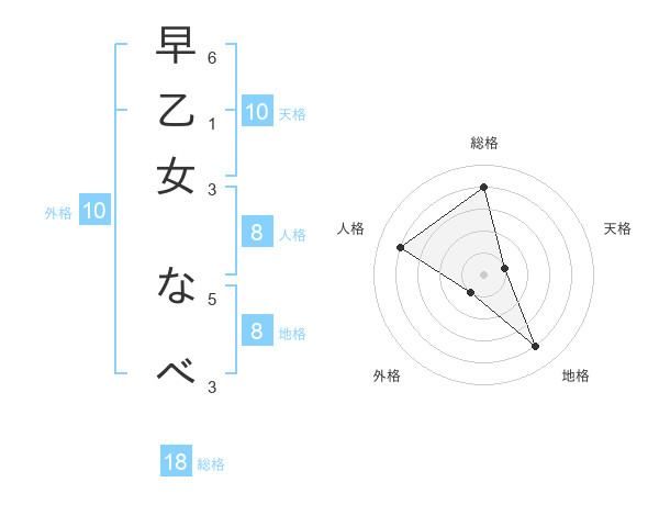 早乙女 なべさんを姓名の画数から五運を鑑定