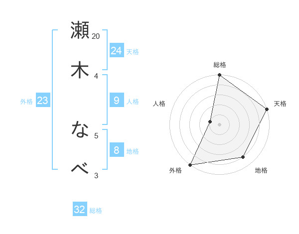 瀬木 なべさんの地格は8画の4点!