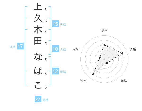上久木田 なほこさんを姓名の画数から五運を鑑定