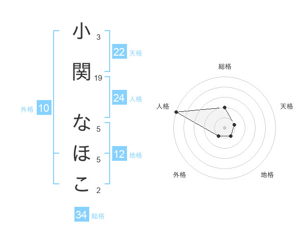小関 なほこさんの総格は34画の2点!