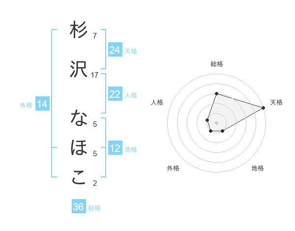 杉沢 なほこさんを姓名の画数から五運を鑑定