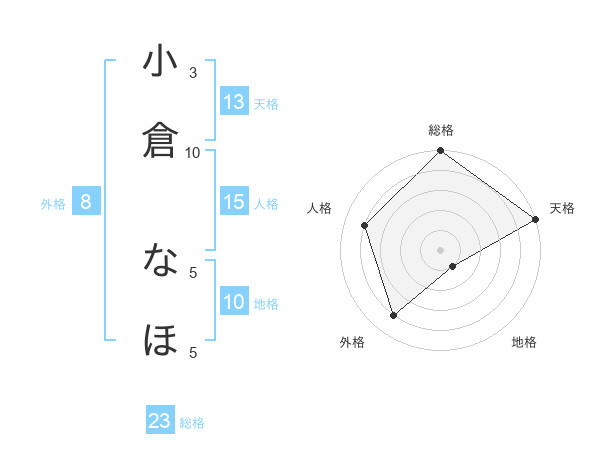 小倉 なほさんの天格は13画の5点!