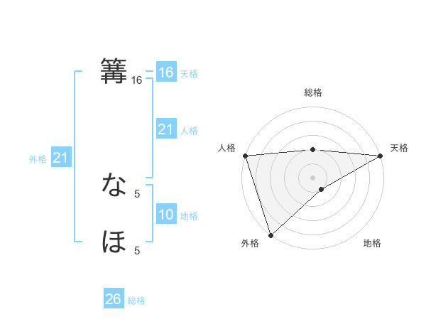 篝 なほさんの天格は16画の5点!
