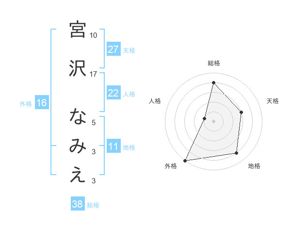 宮沢 なみえさんを姓名の画数から五運を鑑定