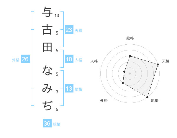 与古田 なみぢさんを姓名の画数から五運を鑑定
