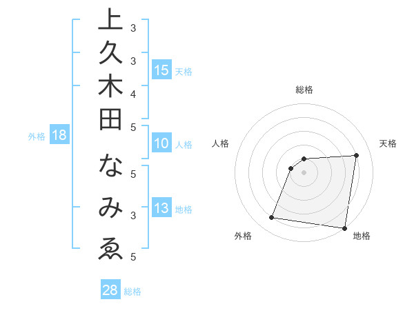 上久木田 なみゑさんを姓名の画数から五運を鑑定