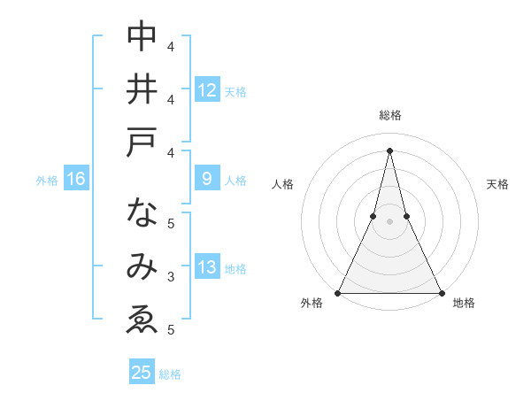 中井戸 なみゑさんを姓名の画数から五運を鑑定