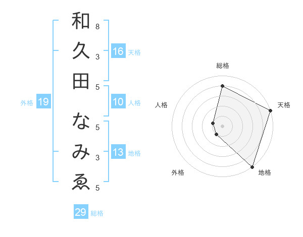 和久田 なみゑさんの総格は29画の4点!