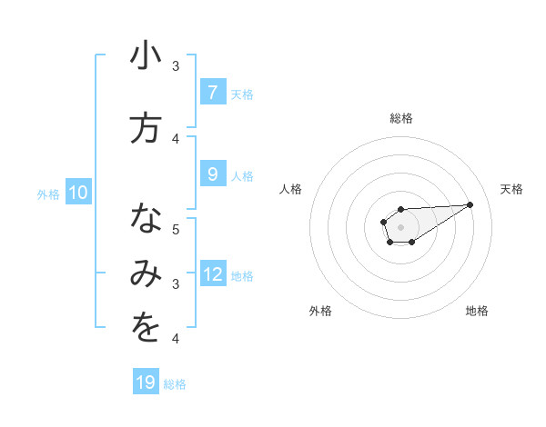 小方 なみをさんの総格は19画の1点