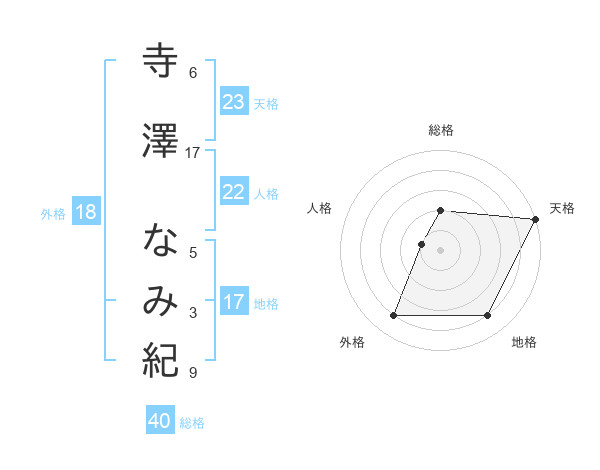 寺澤 なみ紀さんの天格は23画の5点!