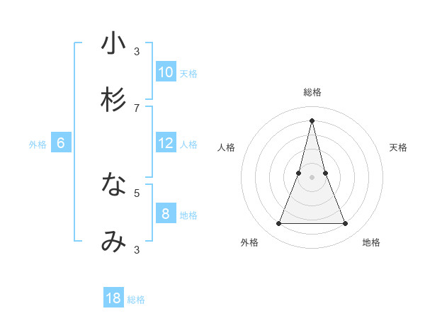 小杉 なみさんの総格は18画の4点!