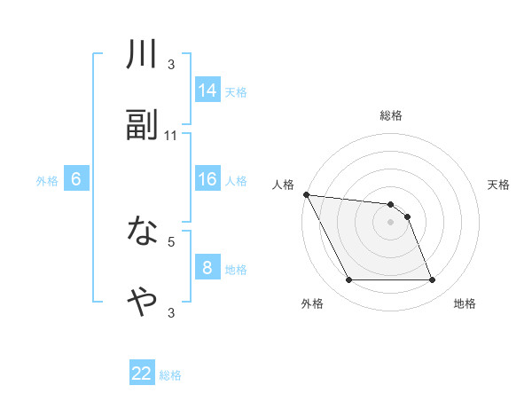 川副 なやさんの総格は22画の1点!