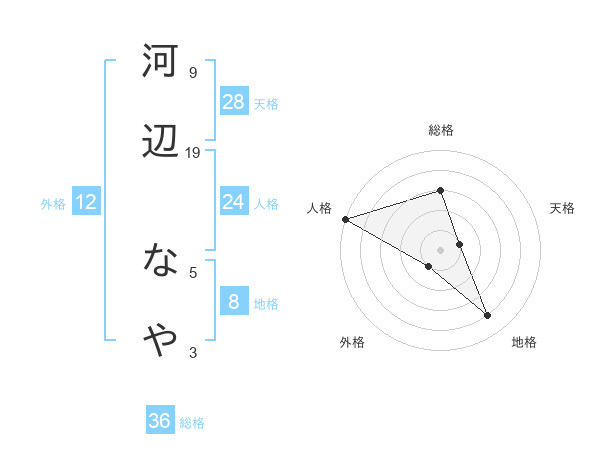 河辺 なやさんの天格は28画の1点!