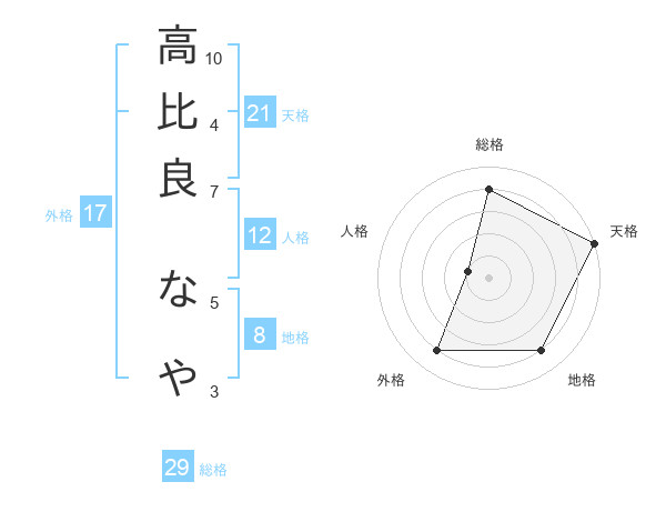 高比良 なやさんの天格は21画の5点
