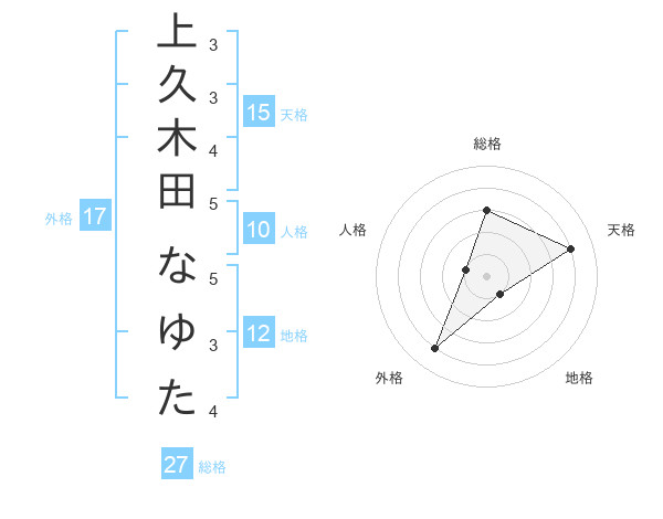 上久木田 なゆたさんを姓名の画数から五運を鑑定
