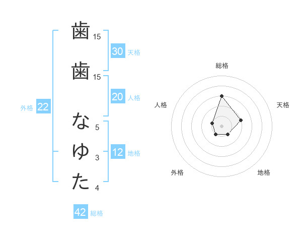 歯歯 なゆたさんを姓名の画数から五運を鑑定
