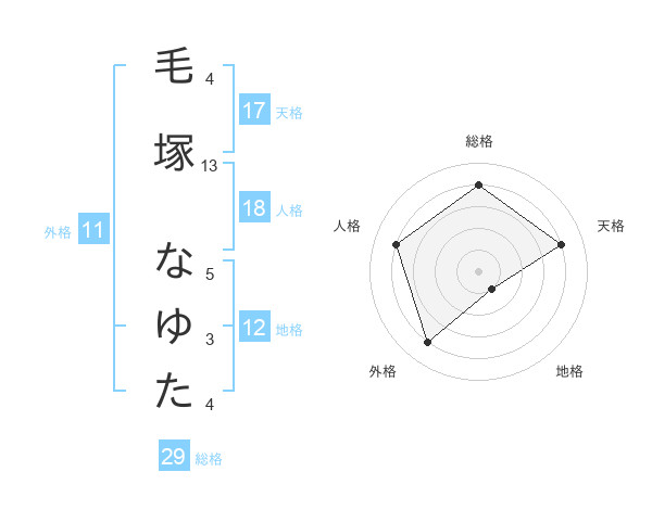 毛塚 なゆたさんを姓名の画数から五運を鑑定